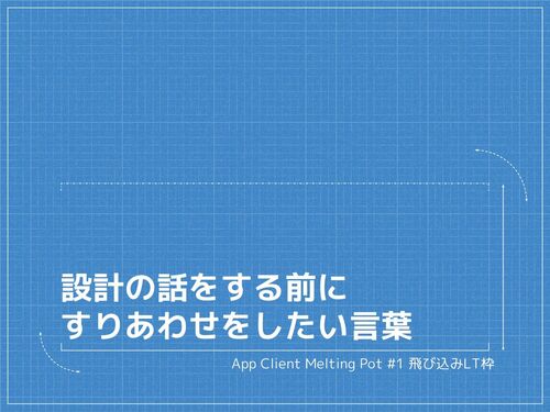 App Client Melting Pot #1「設計」で話してきたメモです。 発表したスライド speakerdeck.com 設計する前にみんなで認識合わせよう、というスライド 伝えたかったこと 言葉の認識ズレが、チームの認識ズレになるので、言葉の統一は図るべきという話(ドメイ…
